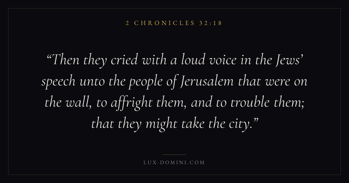Then they cried with a loud voice in the Jews’ speech unto the people of Jerusalem that were on the wall, to affright them, and to trouble them; that they might take the city.