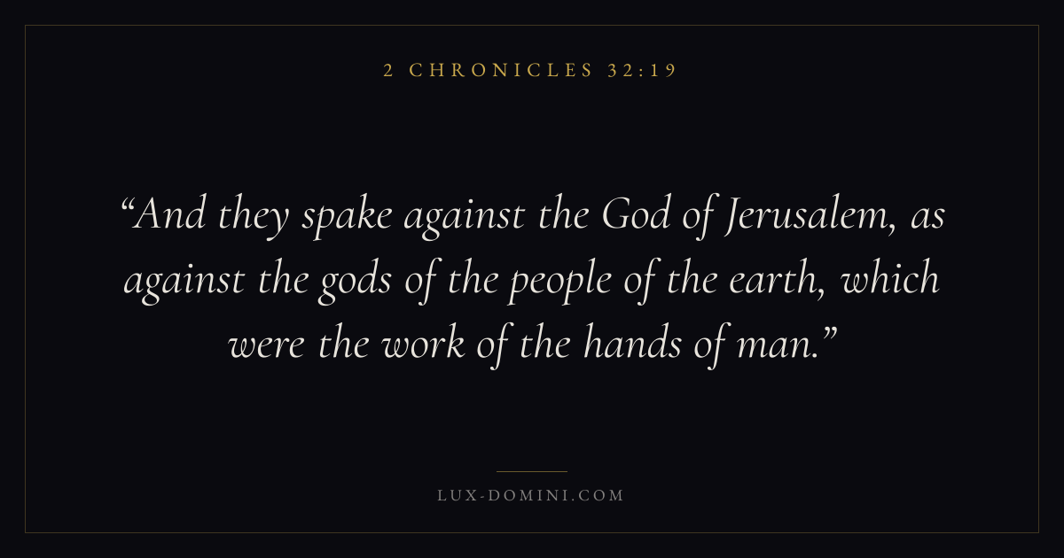 And they spake against the God of Jerusalem, as against the gods of the people of the earth, which were the work of the hands of man.