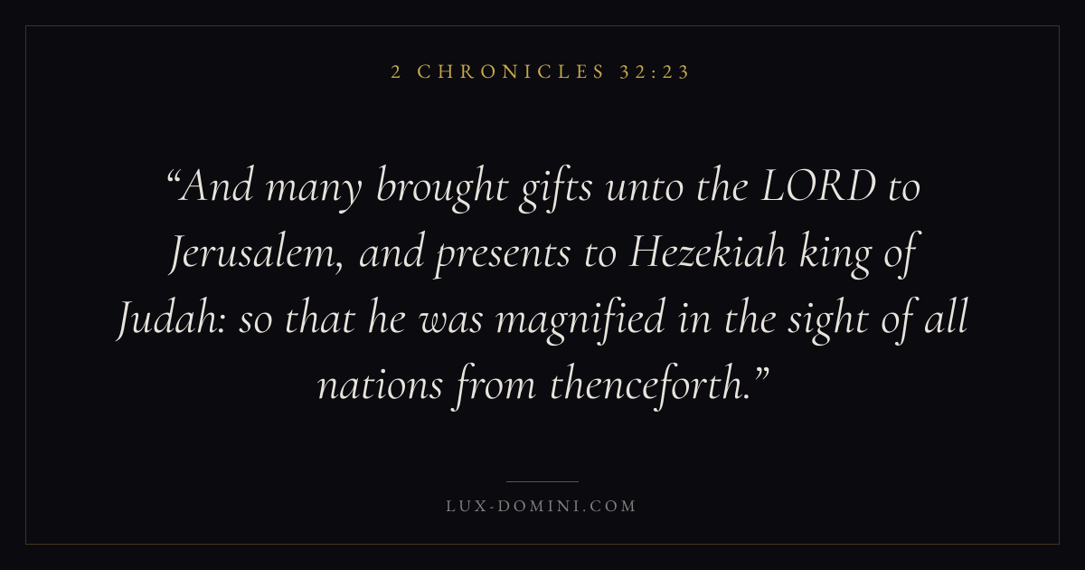 And many brought gifts unto the LORD to Jerusalem, and presents to Hezekiah king of Judah: so that he was magnified in the sight of all nations from thenceforth.