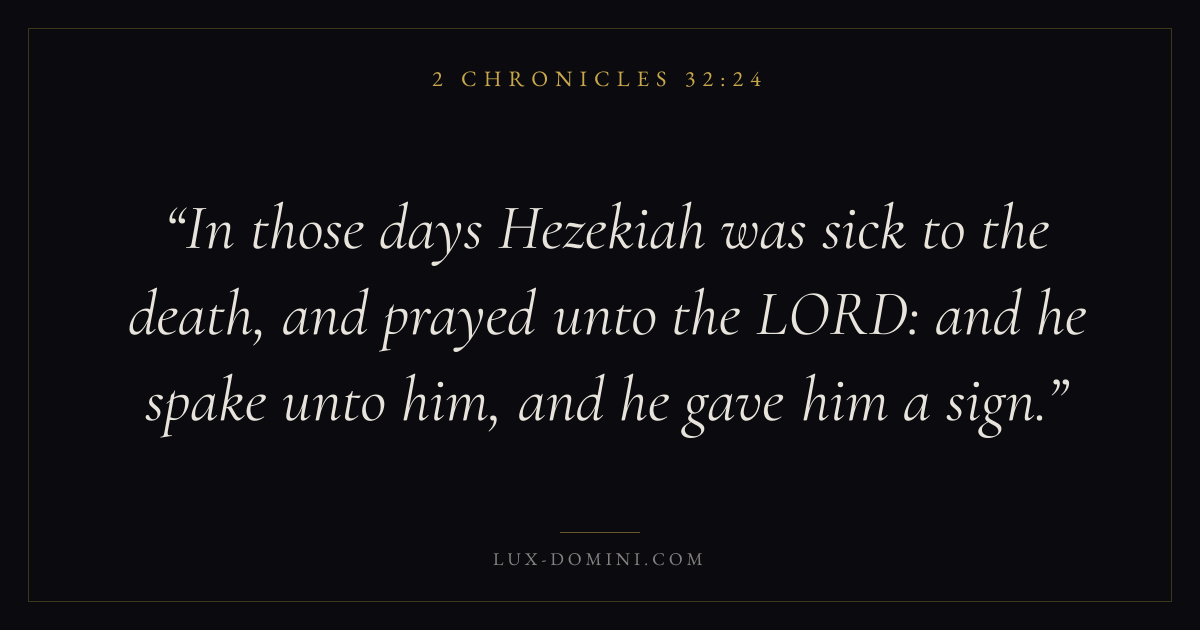 In those days Hezekiah was sick to the death, and prayed unto the LORD: and he spake unto him, and he gave him a sign.