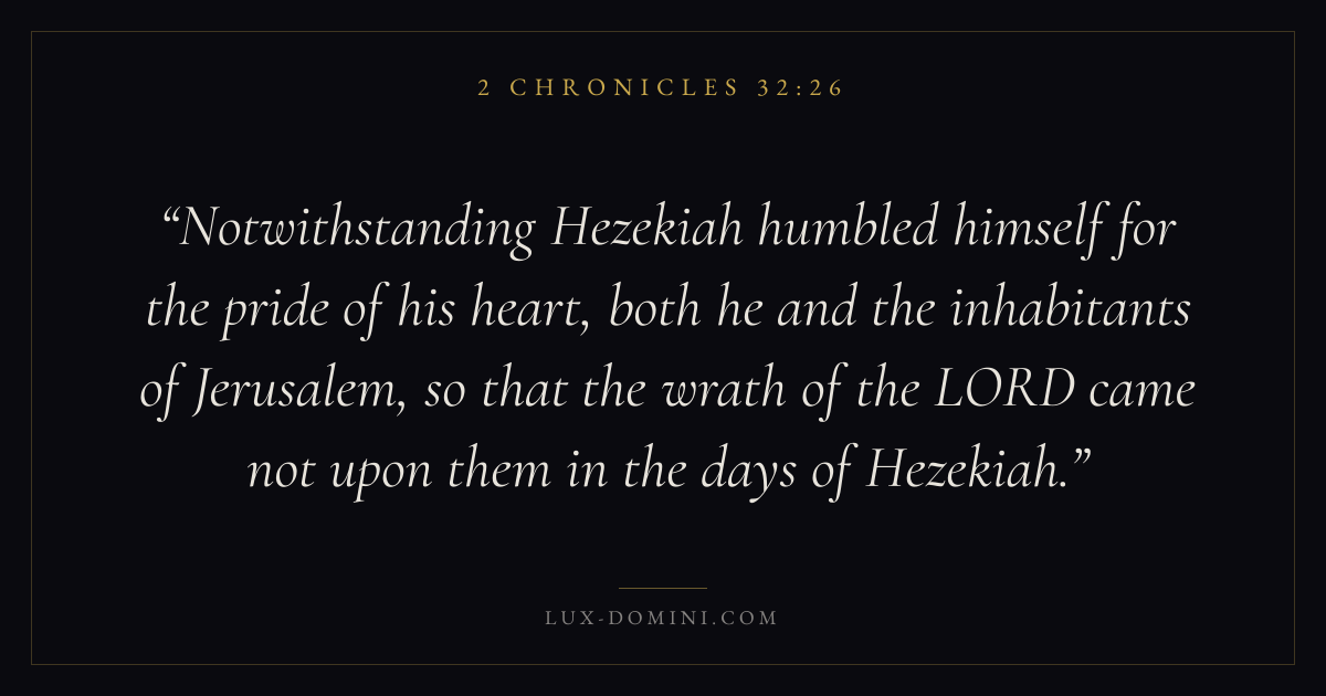 Notwithstanding Hezekiah humbled himself for the pride of his heart, both he and the inhabitants of Jerusalem, so that the wrath of the LORD came not upon them in the days of Hezekiah.
