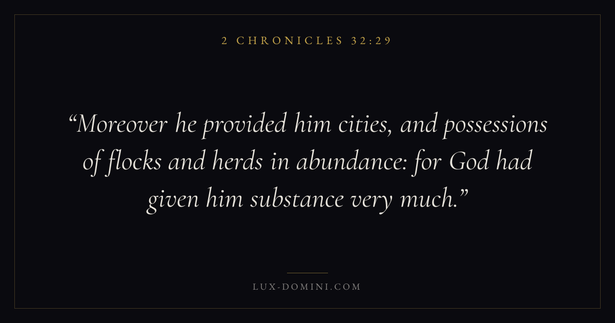Moreover he provided him cities, and possessions of flocks and herds in abundance: for God had given him substance very much.
