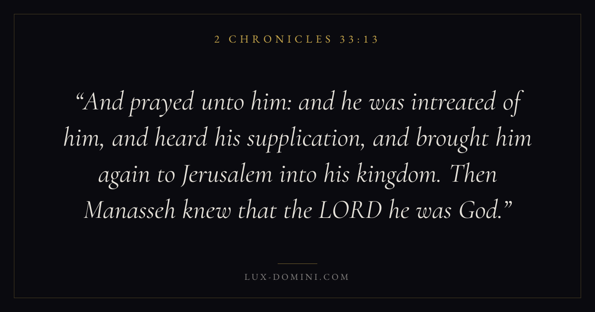 And prayed unto him: and he was intreated of him, and heard his supplication, and brought him again to Jerusalem into his kingdom. Then Manasseh knew that the LORD he was God.