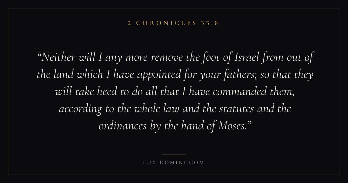 Neither will I any more remove the foot of Israel from out of the land which I have appointed for your fathers; so that they will take heed to do all that I have commanded them, according to the whole law and the statutes and the ordinances by the hand of Moses.