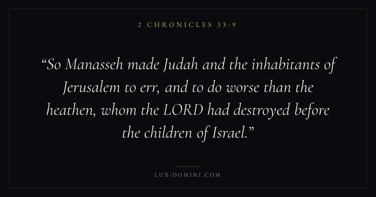 So Manasseh made Judah and the inhabitants of Jerusalem to err, and to do worse than the heathen, whom the LORD had destroyed before the children of Israel.