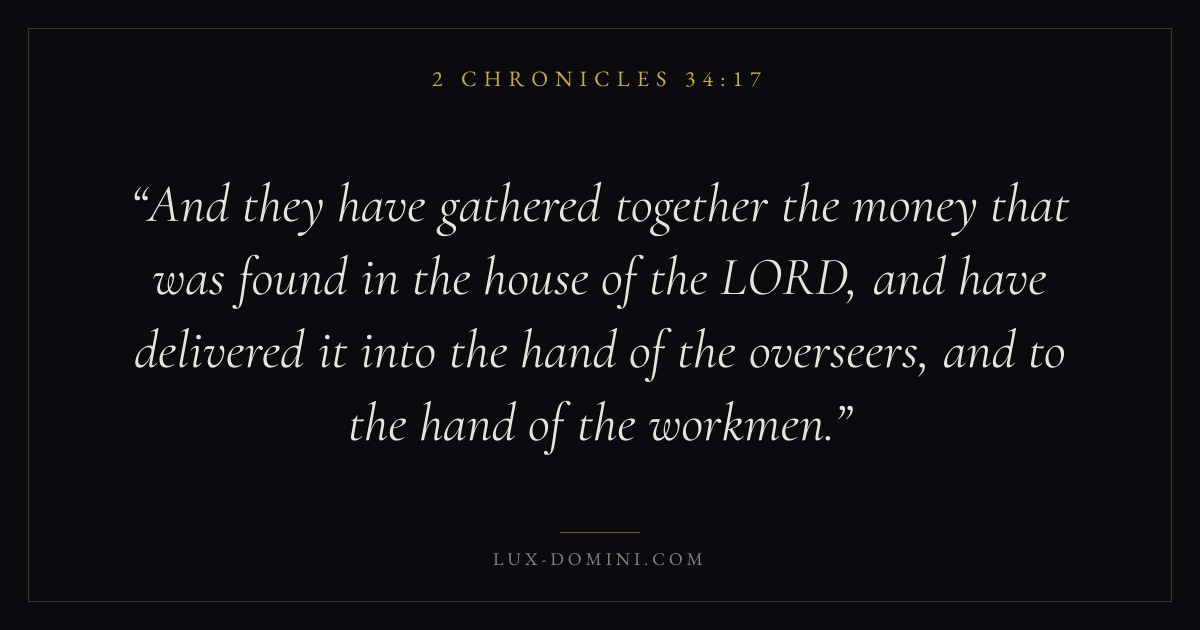 And they have gathered together the money that was found in the house of the LORD, and have delivered it into the hand of the overseers, and to the hand of the workmen.