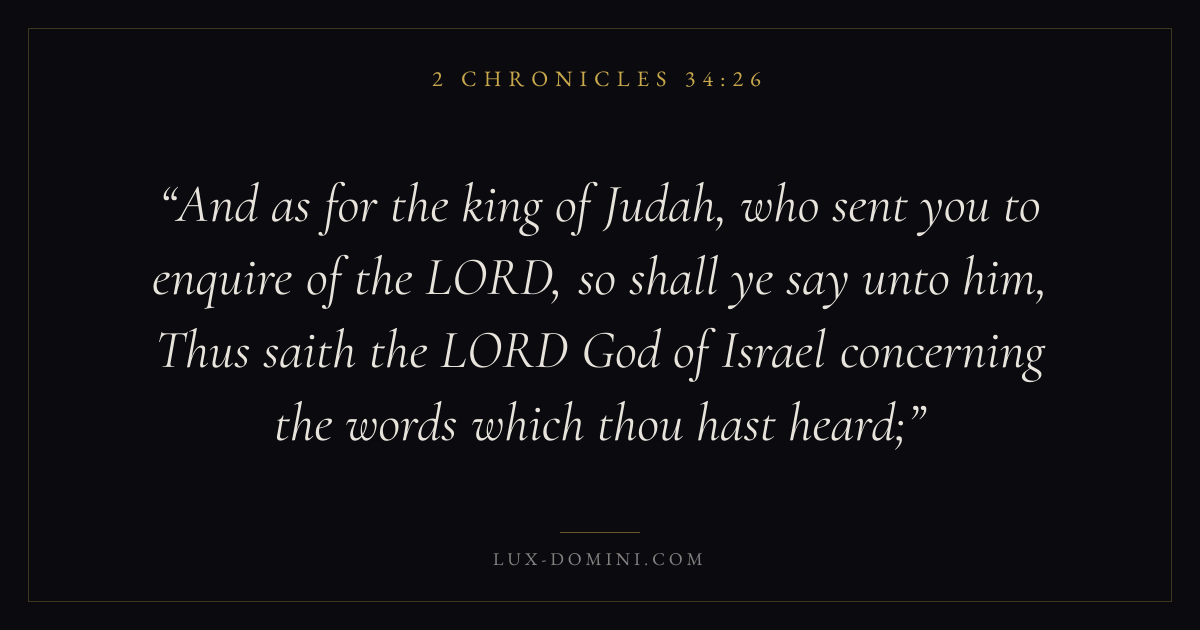 And as for the king of Judah, who sent you to enquire of the LORD, so shall ye say unto him, Thus saith the LORD God of Israel concerning the words which thou hast heard;