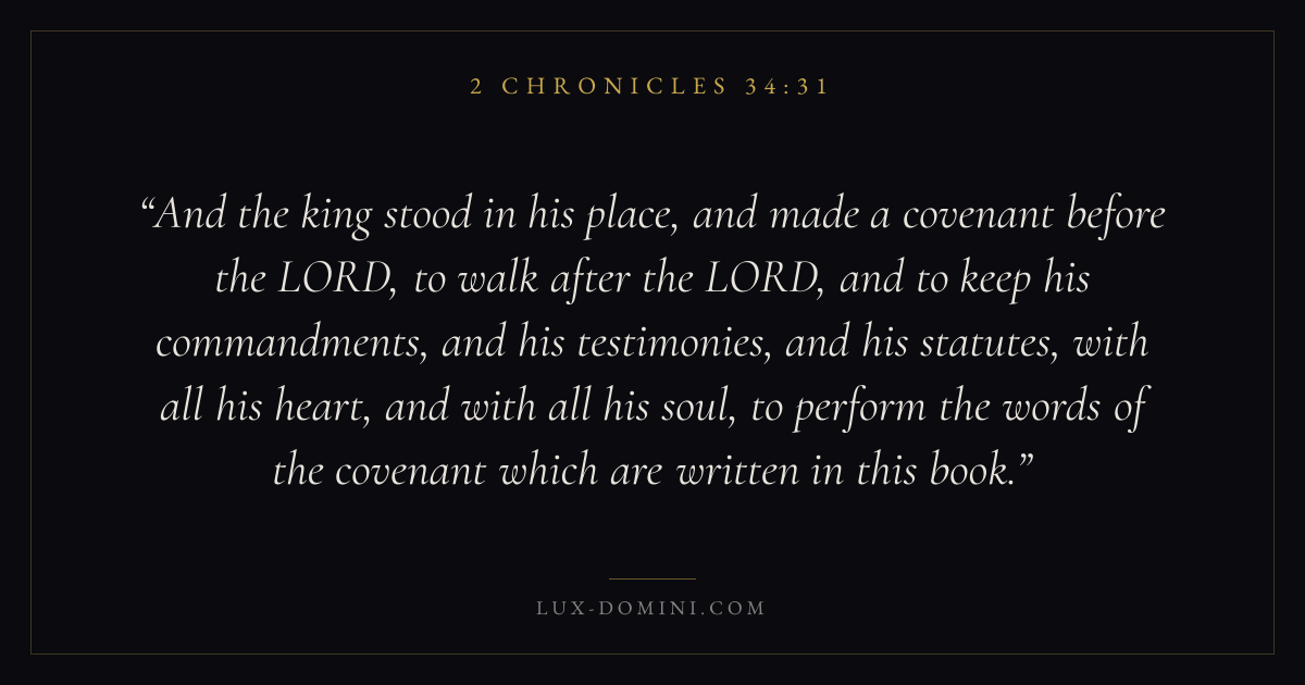 And the king stood in his place, and made a covenant before the LORD, to walk after the LORD, and to keep his commandments, and his testimonies, and his statutes, with all his heart, and with all his soul, to perform the words of the covenant which are written in this book.