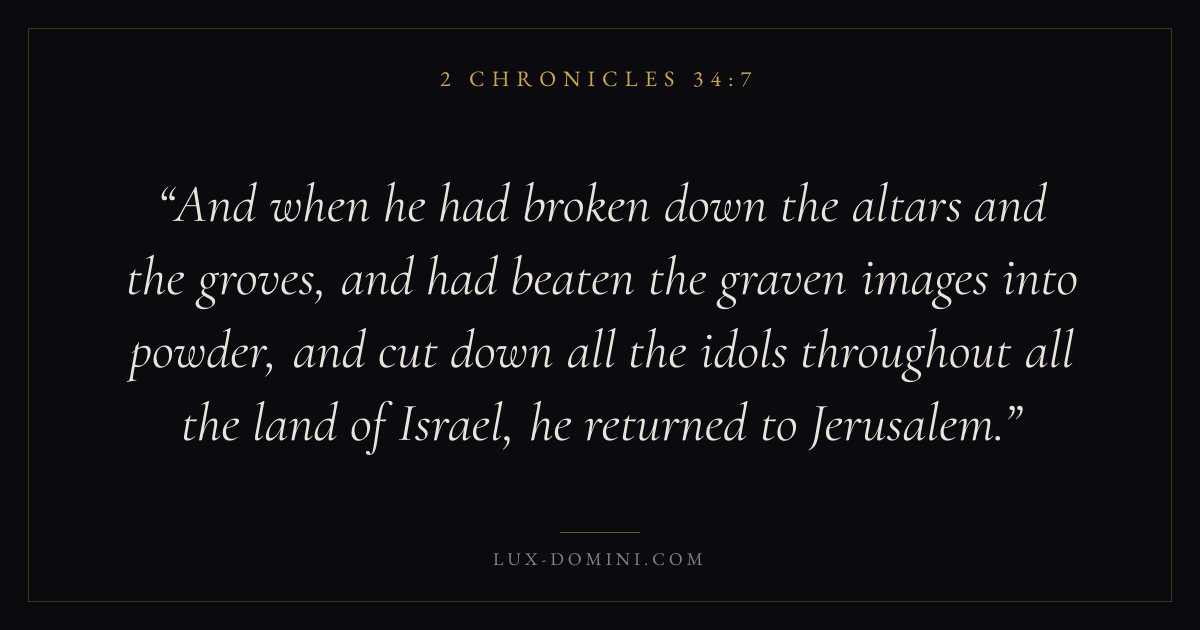 And when he had broken down the altars and the groves, and had beaten the graven images into powder, and cut down all the idols throughout all the land of Israel, he returned to Jerusalem.
