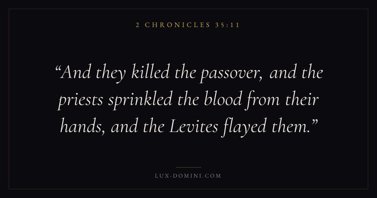 And they killed the passover, and the priests sprinkled the blood from their hands, and the Levites flayed them.