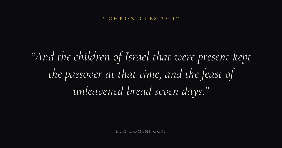 And the children of Israel that were present kept the passover at that time, and the feast of unleavened bread seven days.
