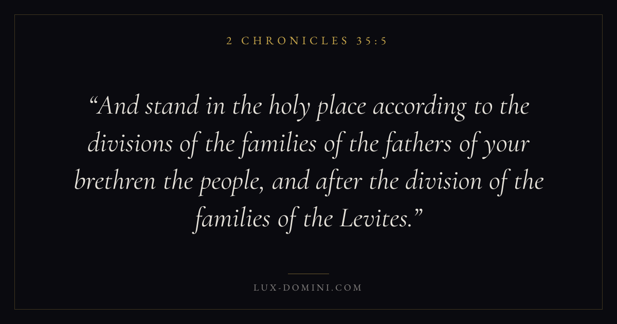 And stand in the holy place according to the divisions of the families of the fathers of your brethren the people, and after the division of the families of the Levites.