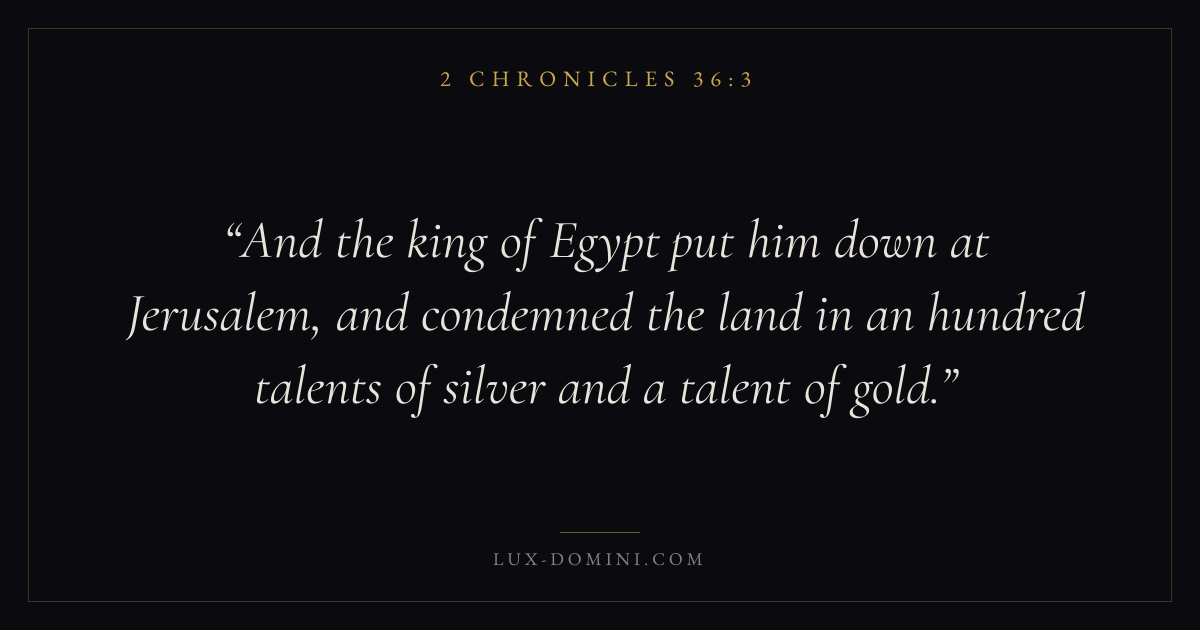 And the king of Egypt put him down at Jerusalem, and condemned the land in an hundred talents of silver and a talent of gold.