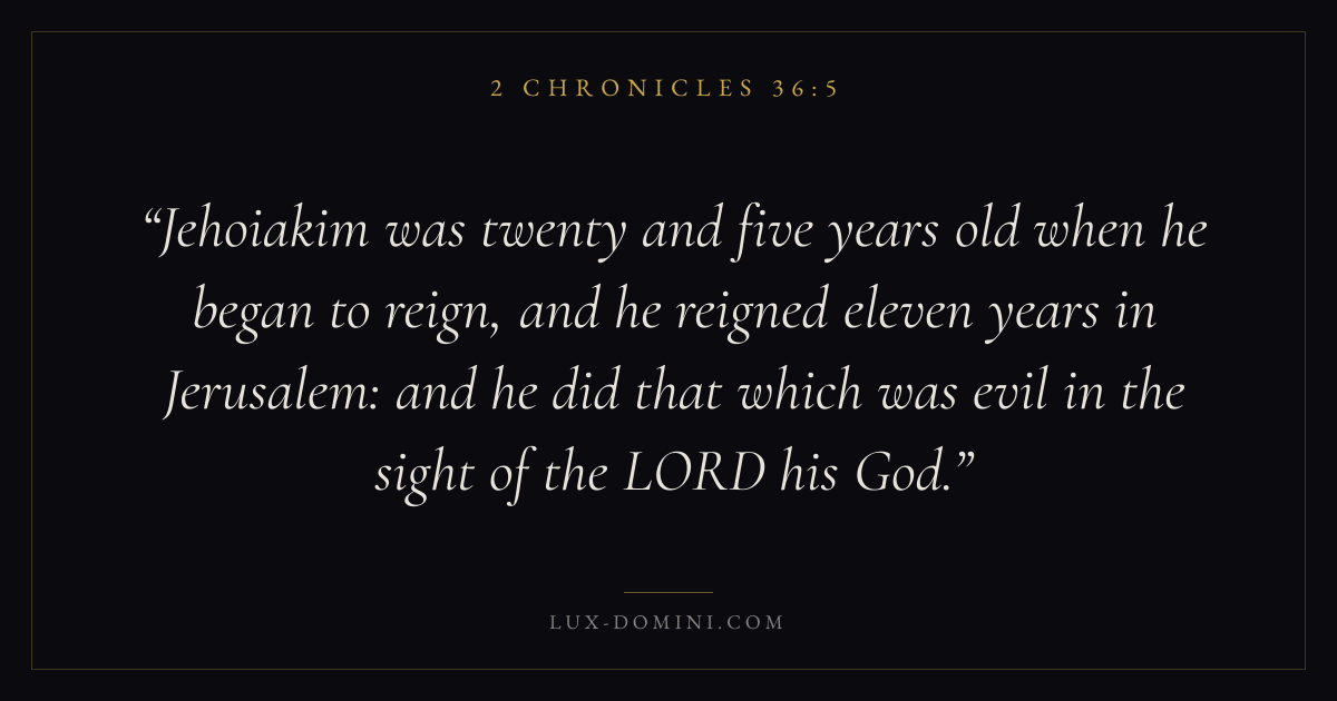 Jehoiakim was twenty and five years old when he began to reign, and he reigned eleven years in Jerusalem: and he did that which was evil in the sight of the LORD his God.