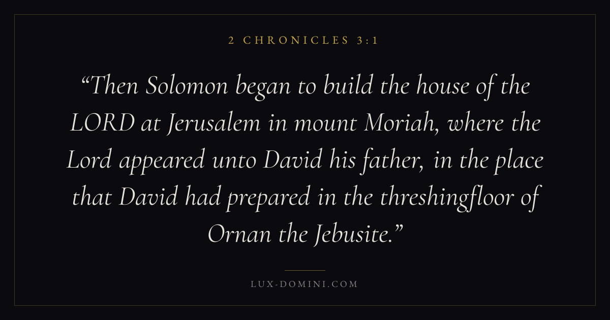 Then Solomon began to build the house of the LORD at Jerusalem in mount Moriah, where the Lord appeared unto David his father, in the place that David had prepared in the threshingfloor of Ornan the Jebusite.