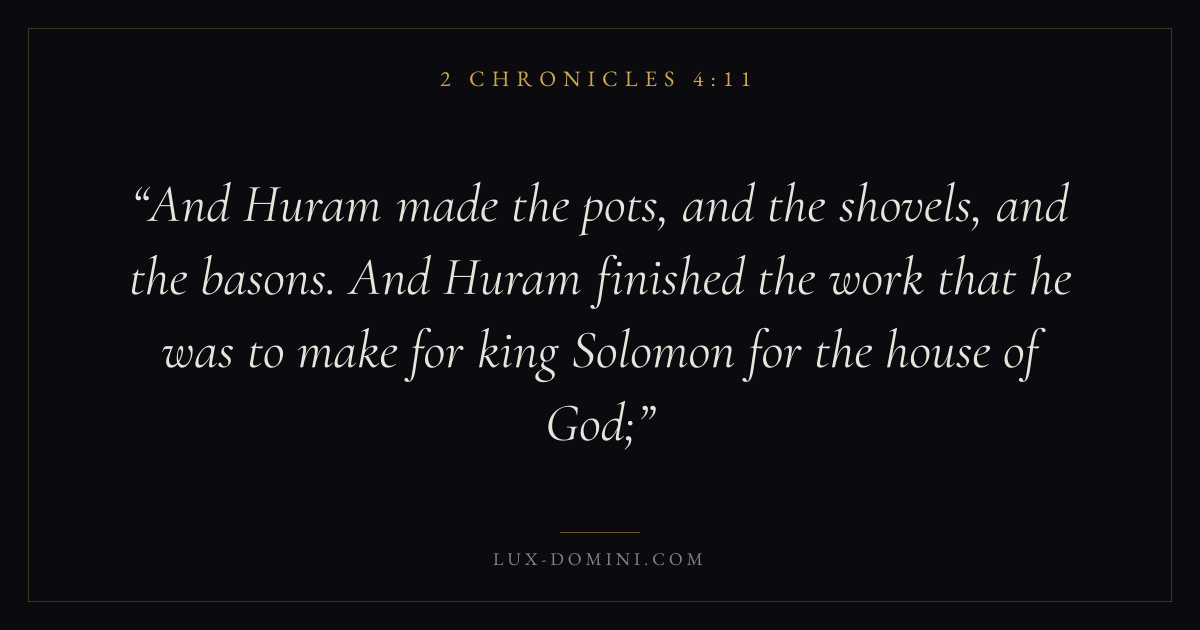 And Huram made the pots, and the shovels, and the basons. And Huram finished the work that he was to make for king Solomon for the house of God;
