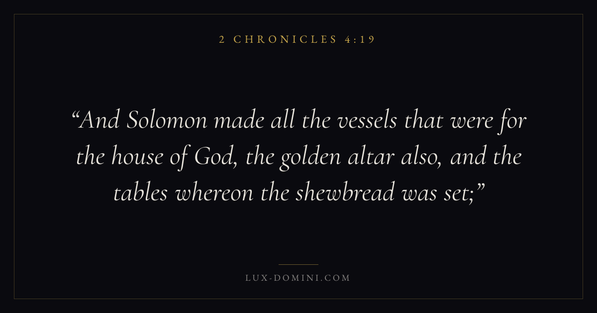 And Solomon made all the vessels that were for the house of God, the golden altar also, and the tables whereon the shewbread was set;