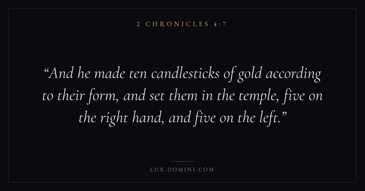 And he made ten candlesticks of gold according to their form, and set them in the temple, five on the right hand, and five on the left.
