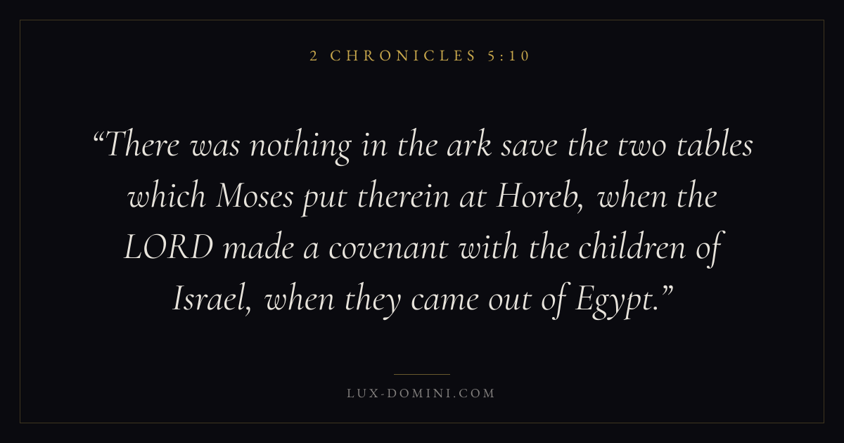 There was nothing in the ark save the two tables which Moses put therein at Horeb, when the LORD made a covenant with the children of Israel, when they came out of Egypt.