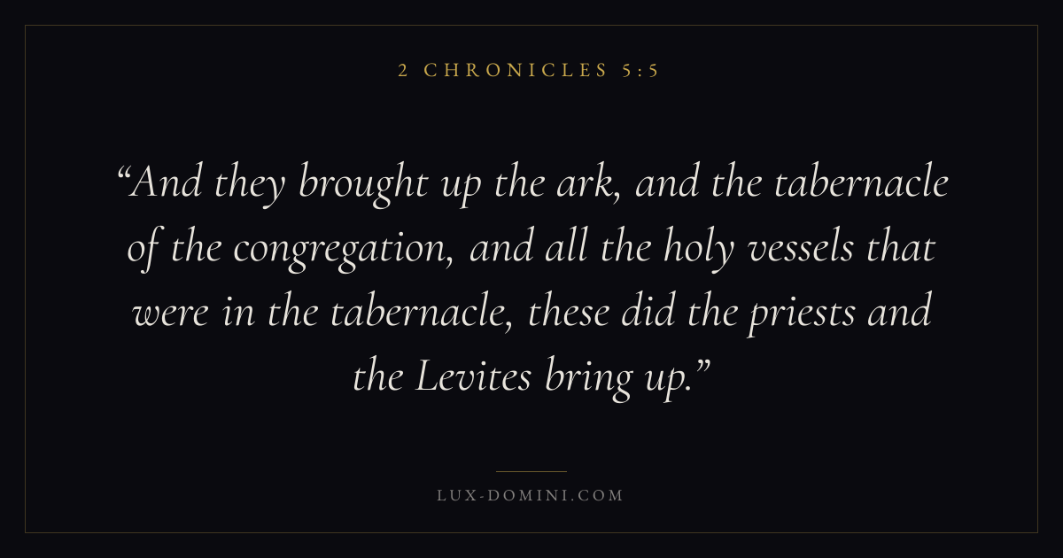 And they brought up the ark, and the tabernacle of the congregation, and all the holy vessels that were in the tabernacle, these did the priests and the Levites bring up.
