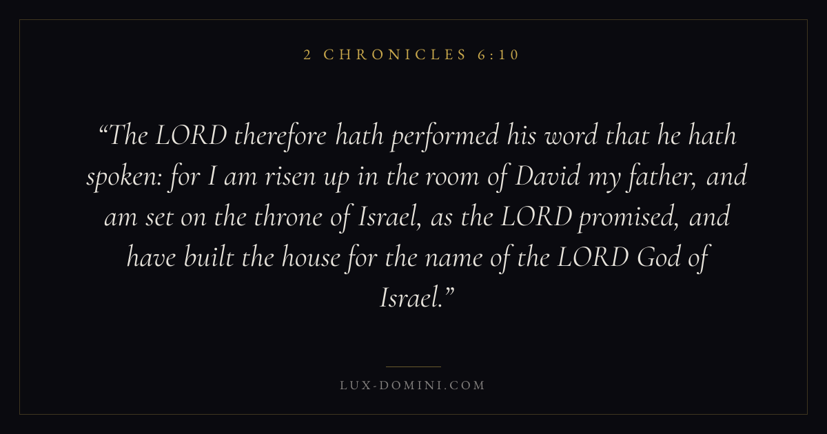 The LORD therefore hath performed his word that he hath spoken: for I am risen up in the room of David my father, and am set on the throne of Israel, as the LORD promised, and have built the house for the name of the LORD God of Israel.