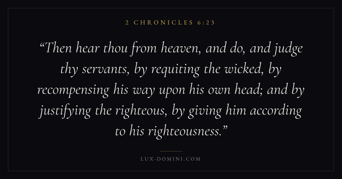Then hear thou from heaven, and do, and judge thy servants, by requiting the wicked, by recompensing his way upon his own head; and by justifying the righteous, by giving him according to his righteousness.