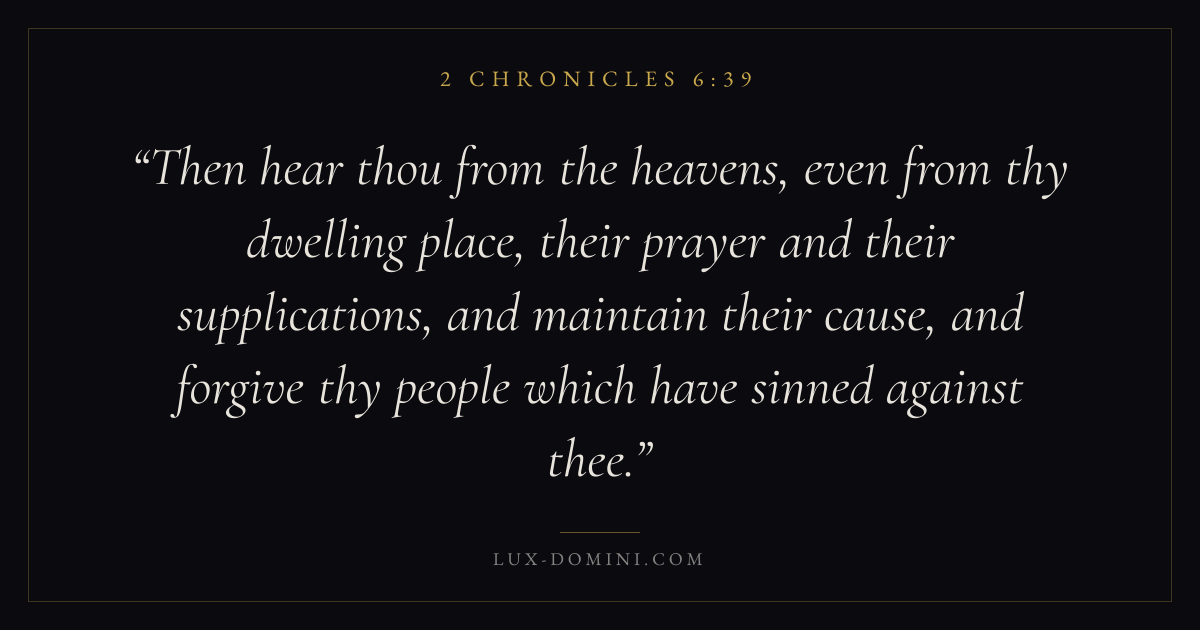 Then hear thou from the heavens, even from thy dwelling place, their prayer and their supplications, and maintain their cause, and forgive thy people which have sinned against thee.