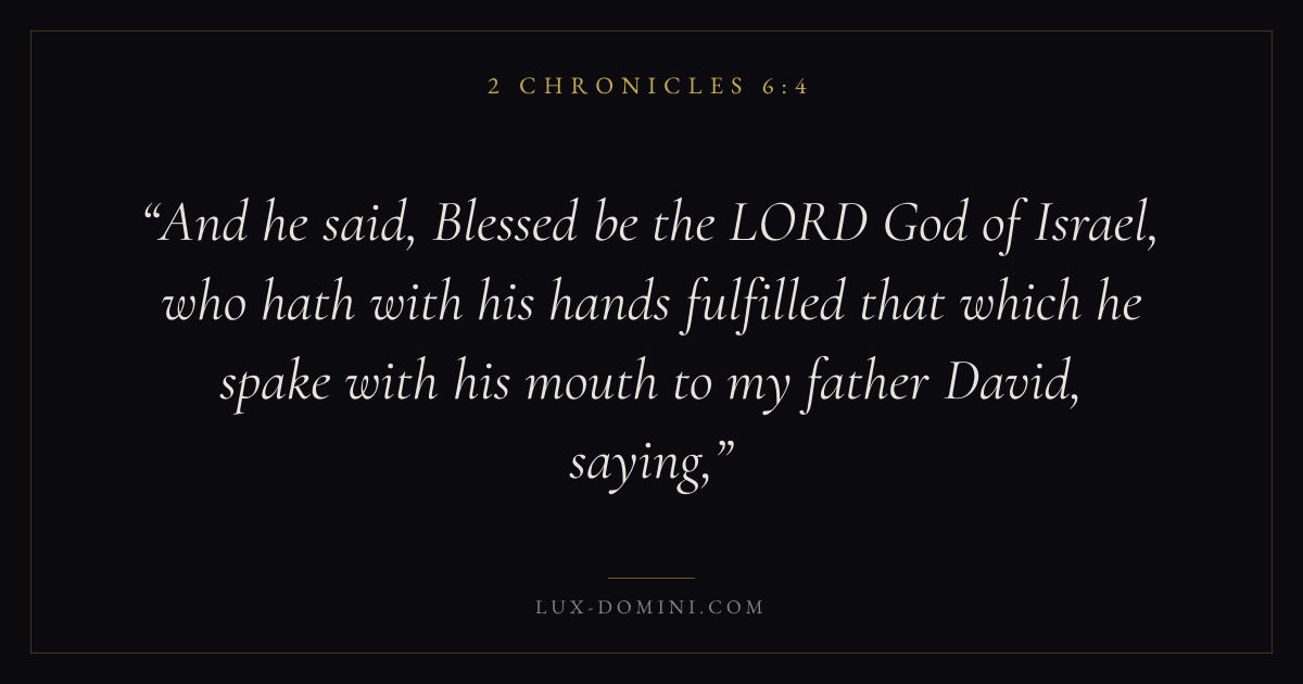 And he said, Blessed be the LORD God of Israel, who hath with his hands fulfilled that which he spake with his mouth to my father David, saying,