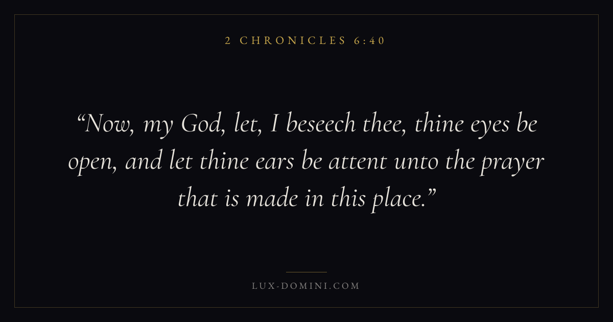 Now, my God, let, I beseech thee, thine eyes be open, and let thine ears be attent unto the prayer that is made in this place.