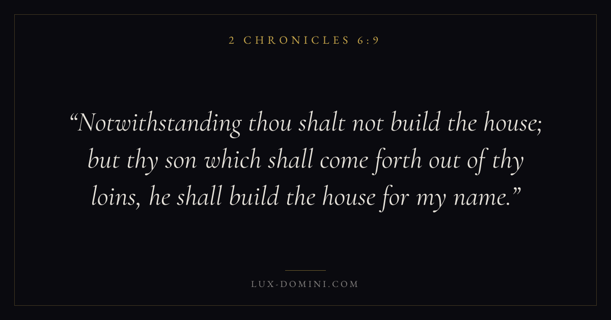 Notwithstanding thou shalt not build the house; but thy son which shall come forth out of thy loins, he shall build the house for my name.