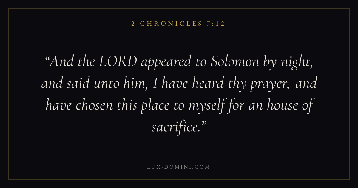 And the LORD appeared to Solomon by night, and said unto him, I have heard thy prayer, and have chosen this place to myself for an house of sacrifice.