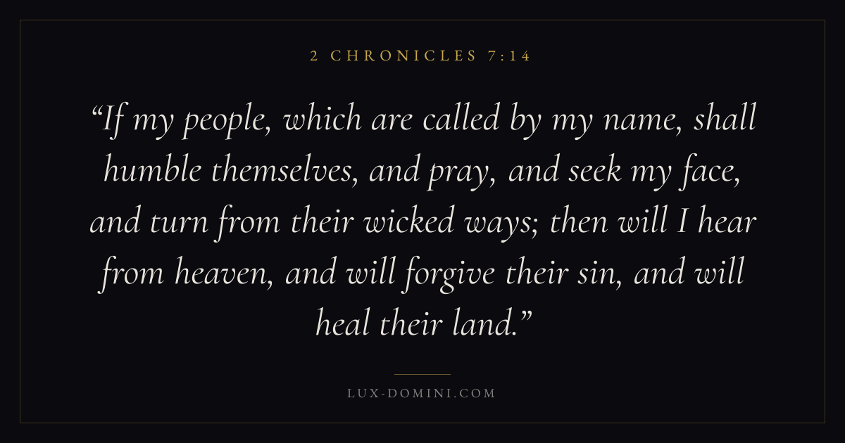 If my people, which are called by my name, shall humble themselves, and pray, and seek my face, and turn from their wicked ways; then will I hear from heaven, and will forgive their sin, and will heal their land.