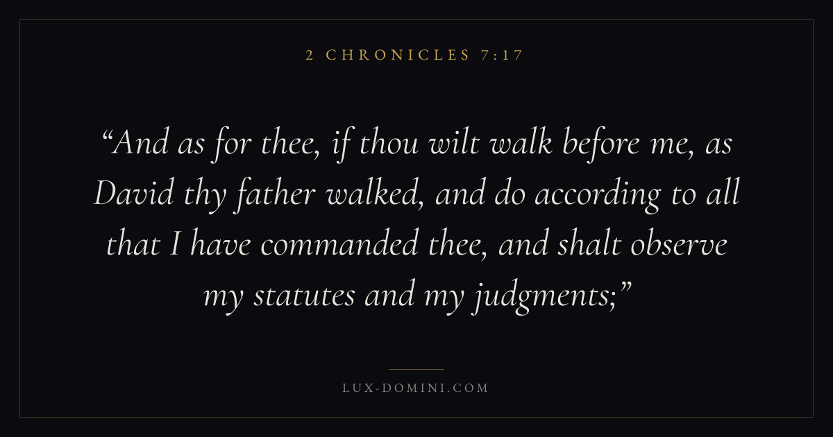 And as for thee, if thou wilt walk before me, as David thy father walked, and do according to all that I have commanded thee, and shalt observe my statutes and my judgments;
