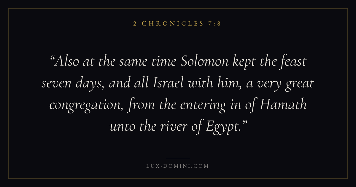 Also at the same time Solomon kept the feast seven days, and all Israel with him, a very great congregation, from the entering in of Hamath unto the river of Egypt.
