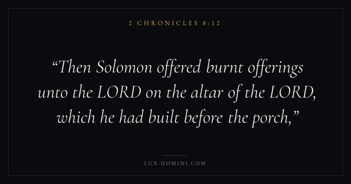 Then Solomon offered burnt offerings unto the LORD on the altar of the LORD, which he had built before the porch,