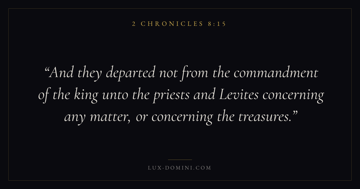 And they departed not from the commandment of the king unto the priests and Levites concerning any matter, or concerning the treasures.