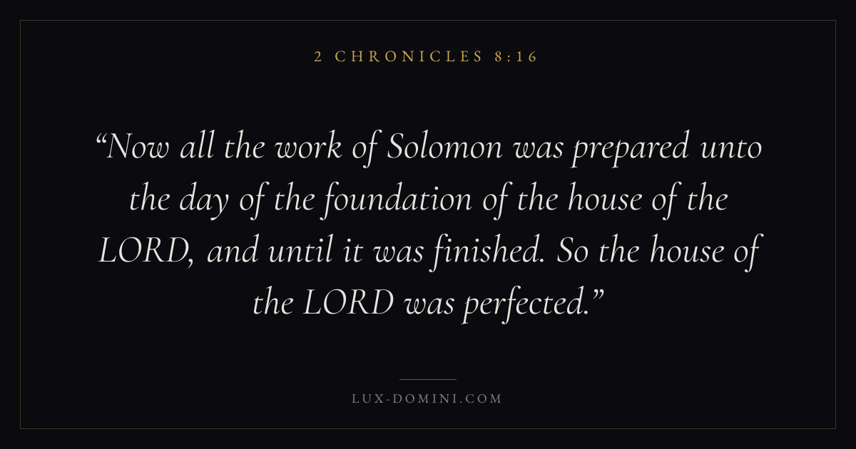 Now all the work of Solomon was prepared unto the day of the foundation of the house of the LORD, and until it was finished. So the house of the LORD was perfected.