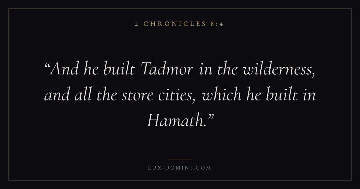 And he built Tadmor in the wilderness, and all the store cities, which he built in Hamath.