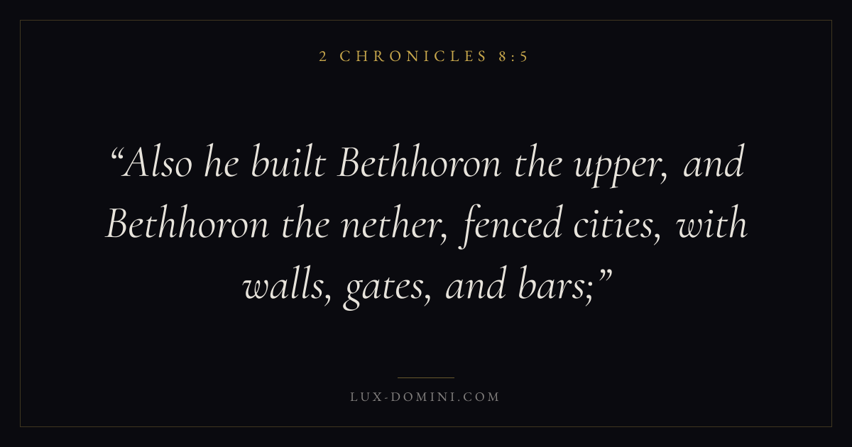 Also he built Bethhoron the upper, and Bethhoron the nether, fenced cities, with walls, gates, and bars;