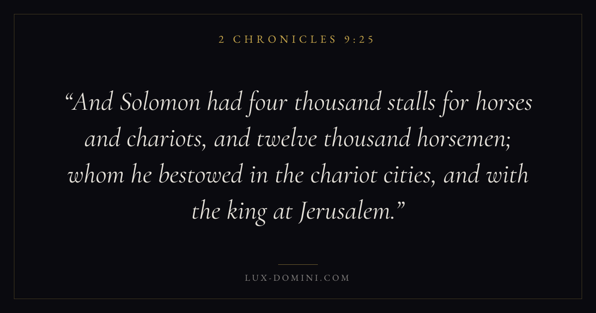And Solomon had four thousand stalls for horses and chariots, and twelve thousand horsemen; whom he bestowed in the chariot cities, and with the king at Jerusalem.