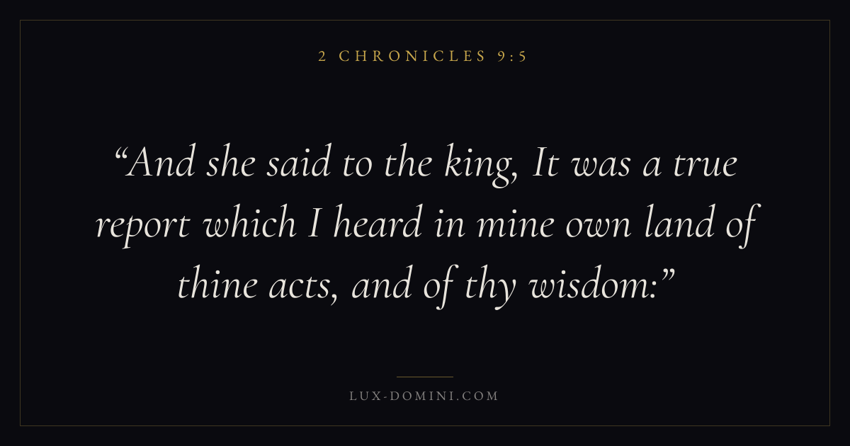 And she said to the king, It was a true report which I heard in mine own land of thine acts, and of thy wisdom: