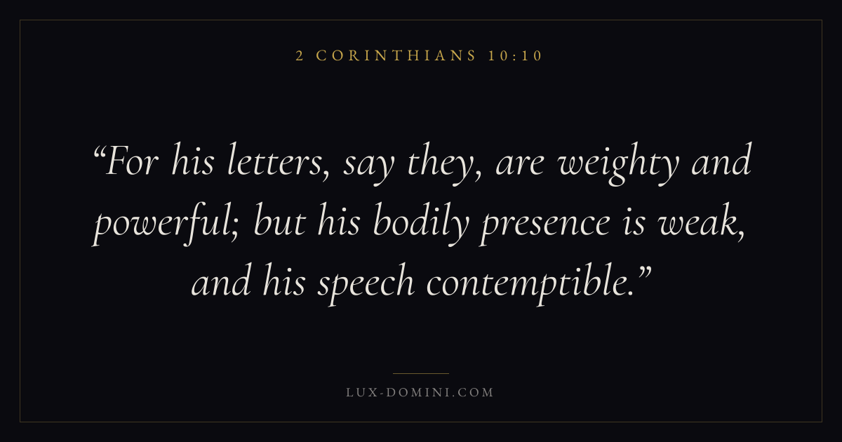 For his letters, say they, are weighty and powerful; but his bodily presence is weak, and his speech contemptible.