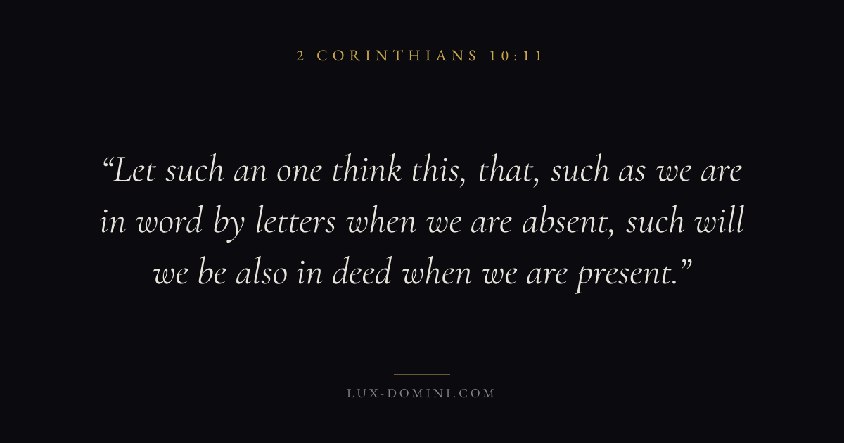 What does 2 Corinthians 10:11 mean?