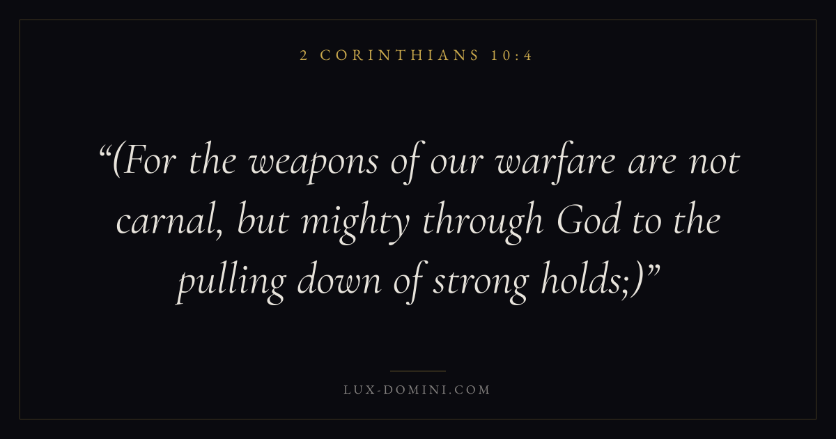(For the weapons of our warfare are not carnal, but mighty through God to the pulling down of strong holds;)