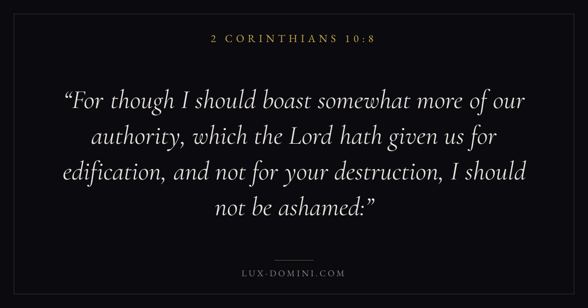 For though I should boast somewhat more of our authority, which the Lord hath given us for edification, and not for your destruction, I should not be ashamed: