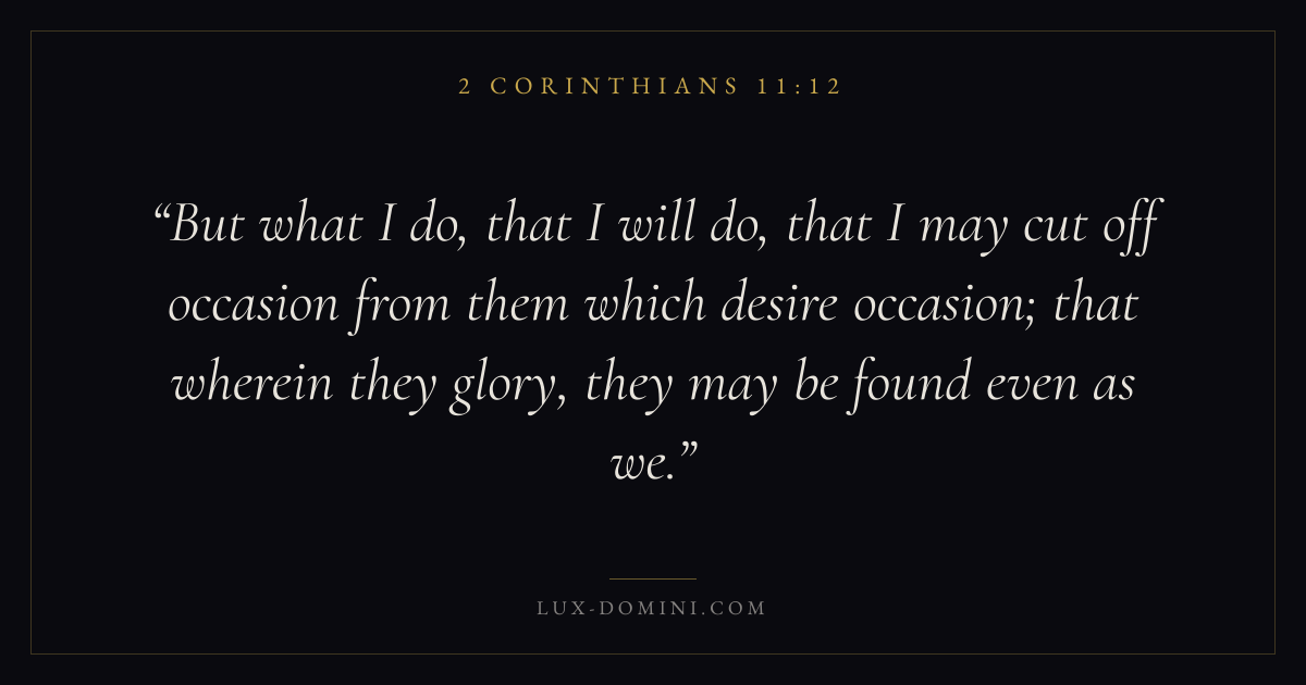 But what I do, that I will do, that I may cut off occasion from them which desire occasion; that wherein they glory, they may be found even as we.