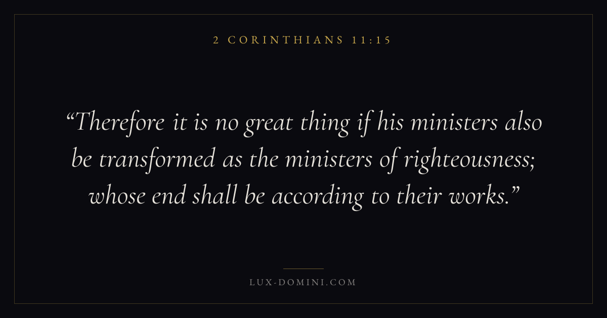 Therefore it is no great thing if his ministers also be transformed as the ministers of righteousness; whose end shall be according to their works.