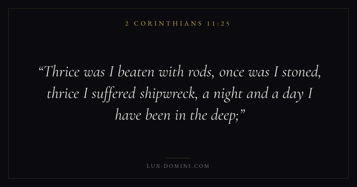 Thrice was I beaten with rods, once was I stoned, thrice I suffered shipwreck, a night and a day I have been in the deep;