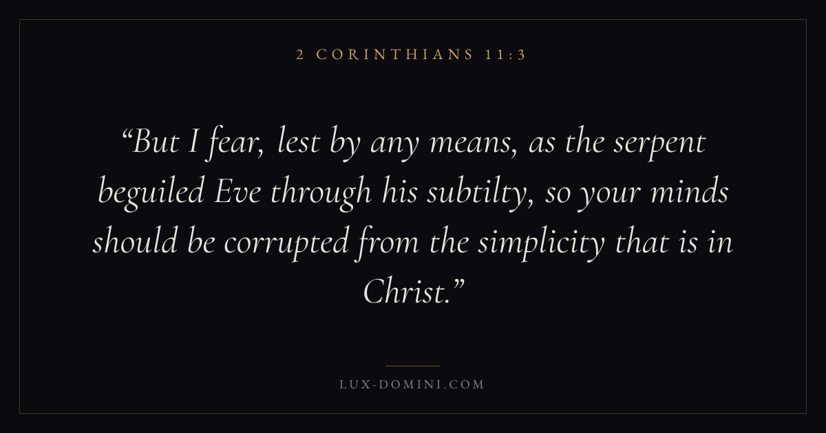 But I fear, lest by any means, as the serpent beguiled Eve through his subtilty, so your minds should be corrupted from the simplicity that is in Christ.