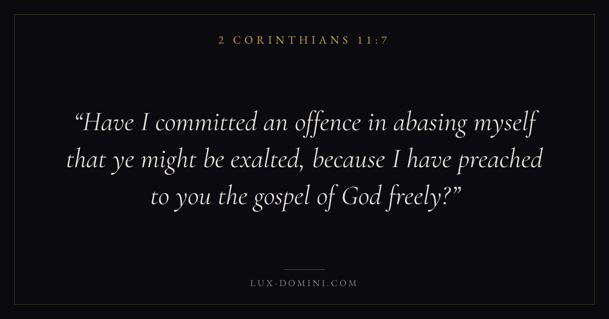 Have I committed an offence in abasing myself that ye might be exalted, because I have preached to you the gospel of God freely?